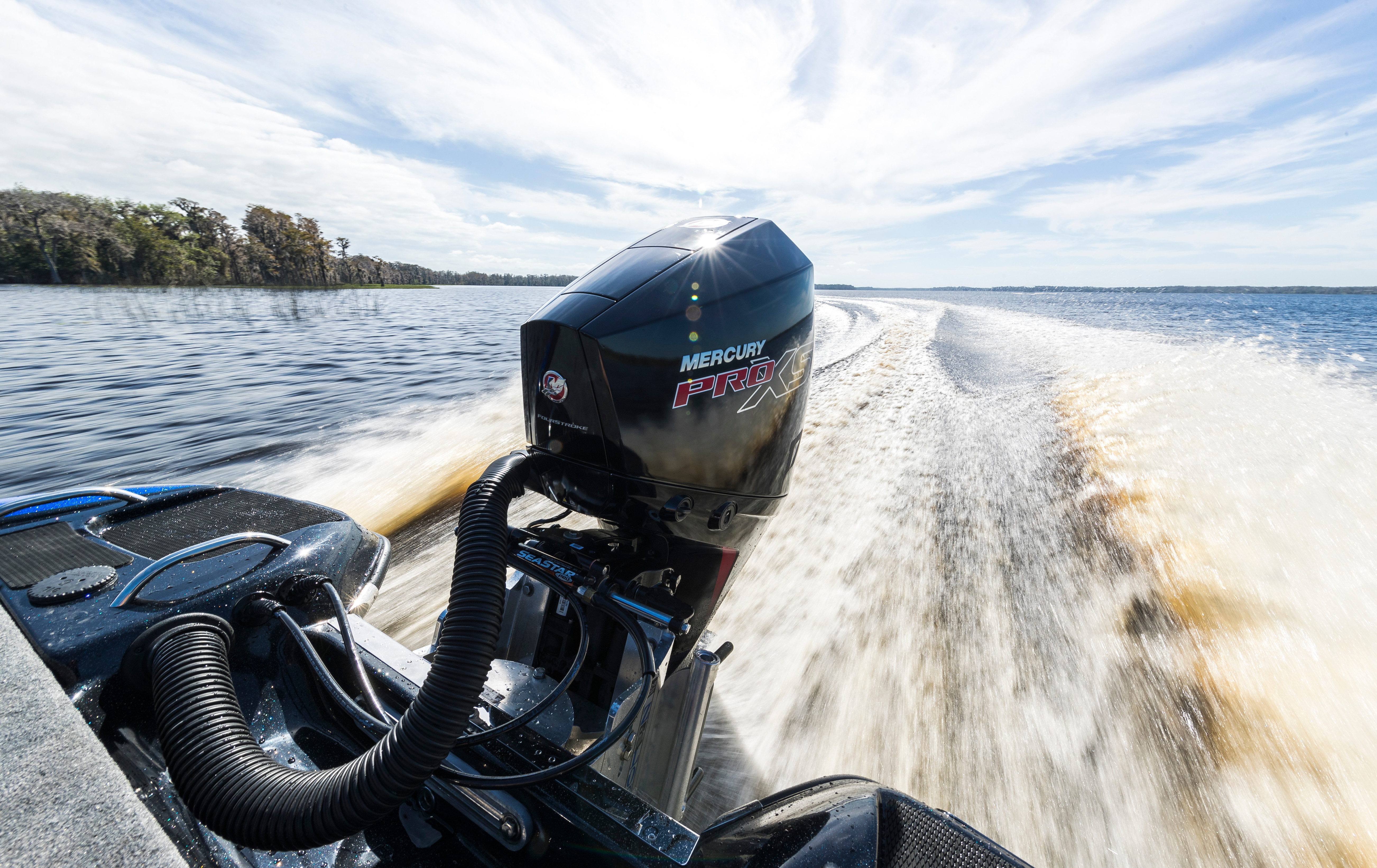 Ingen anden påhængsmotor kommer hurtigere fra nul til maksimum end en Mercury Pro XS, nu med V-6 3,4 liter. Det er en præstation, der vil få din båd ud af starthullerne og hen til næste sted på rekordtid. Pro XS motorerne har et virkeligt stort cylindervolumen i en motorblok, der er gearet til høje præstationer med dybtliggende dobbelt knastaksel og længere indløbstragt, som får gashåndtaget til at reagere omgående ved alle hastigheder.